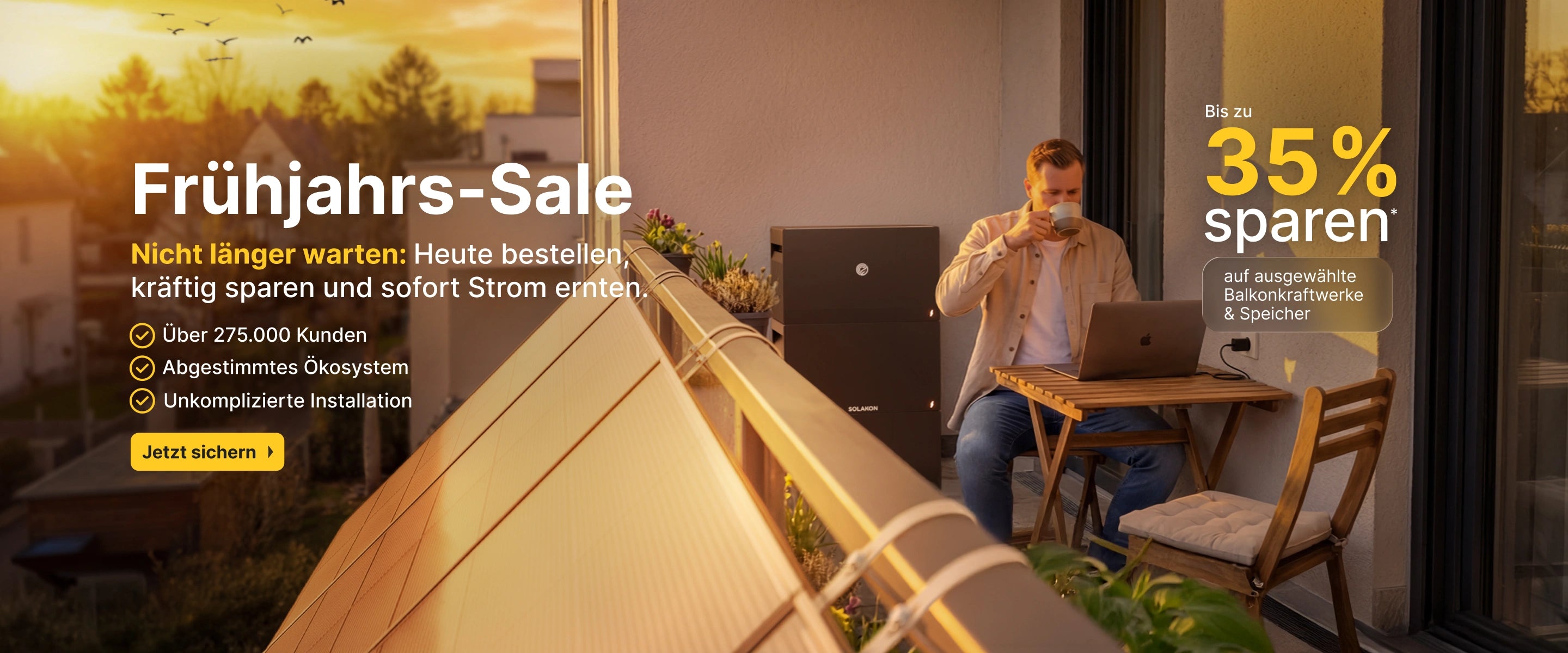 Willkommen bei Solakon, Ihrem verlässlichen Partner für moderne Balkonkraftwerke – auch bekannt als Mini-Solaranlage, Stecker-Solaranlage, Balkon-Solaranlage oder Mini-PV-Anlagen. Mit über 275.000 zufriedenen Kunden und Auszeichnungen wie „Sehr Gut“ von Focus Money als Nr.1-Anbieter unter 11 Mitbewerbern sind wir stolz, Ihnen unsere leistungsstarken Energielösungen anbieten zu können.