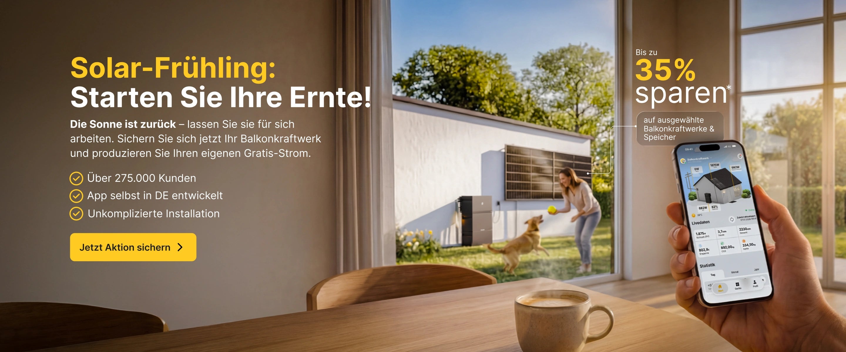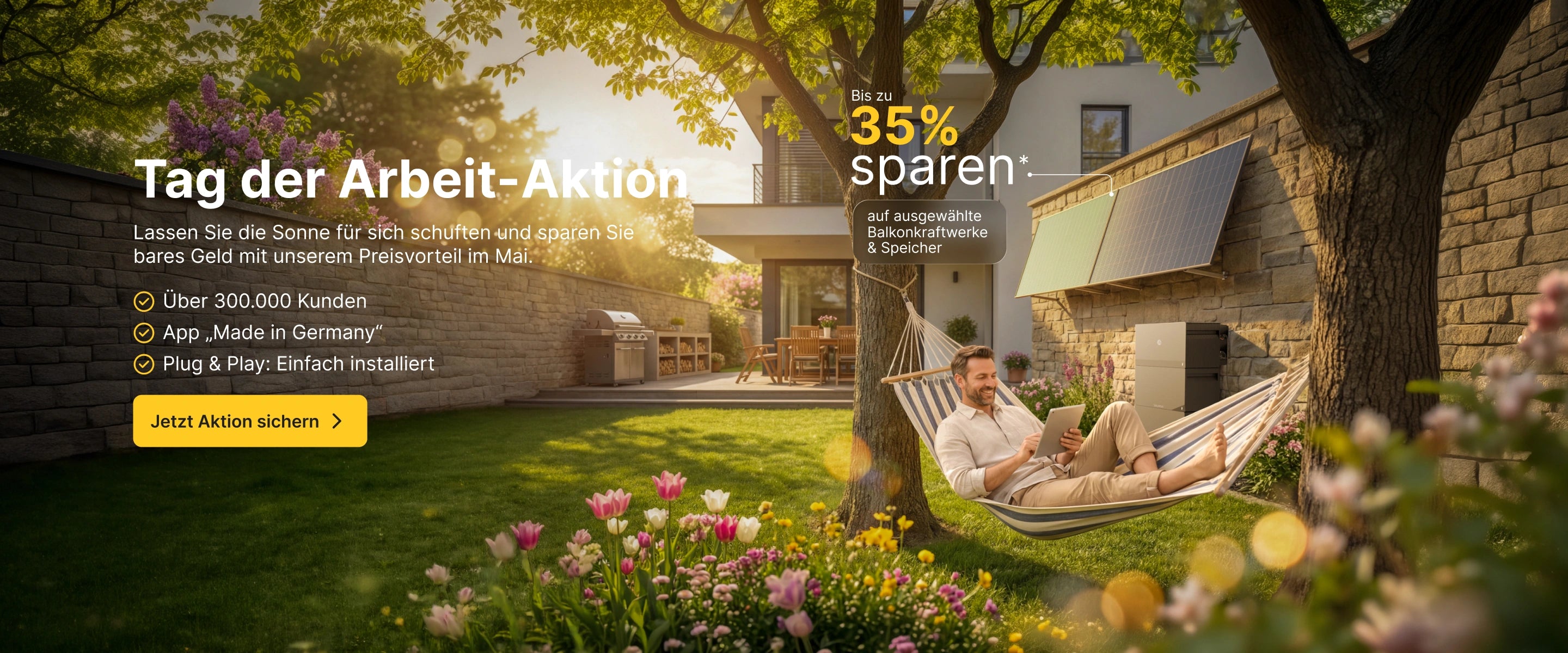 Die Preise für ein Balkonkraftwerk variieren je nach Modell, Leistung und Zubehör. Dank unserer regelmäßig wechselnden Balkonkraftwerk Angebote erhalten Sie hochwertige Mini-PV-Anlagen bereits ab wenigen hundert Euro – inklusive App, Support und voller Garantie - die Ihnen dabei helfen, Ihren Stromverbrauch dauerhaft zu senken.