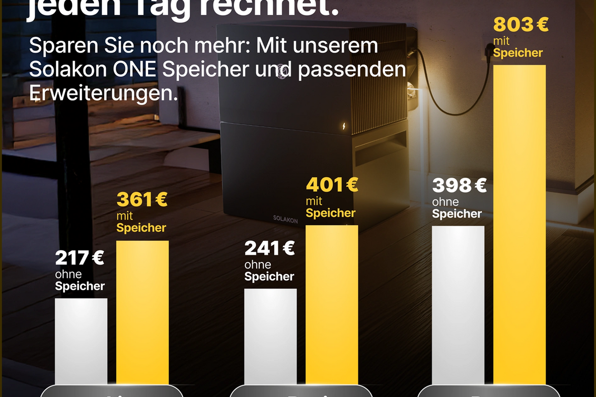 Schon ab dem ersten Tag senken die Solakon Komplettsets spürbar Ihre Stromkosten. Und das über Jahrzehnte. Sehen Sie selbst, wie sich Ihre Investition auszahlt.