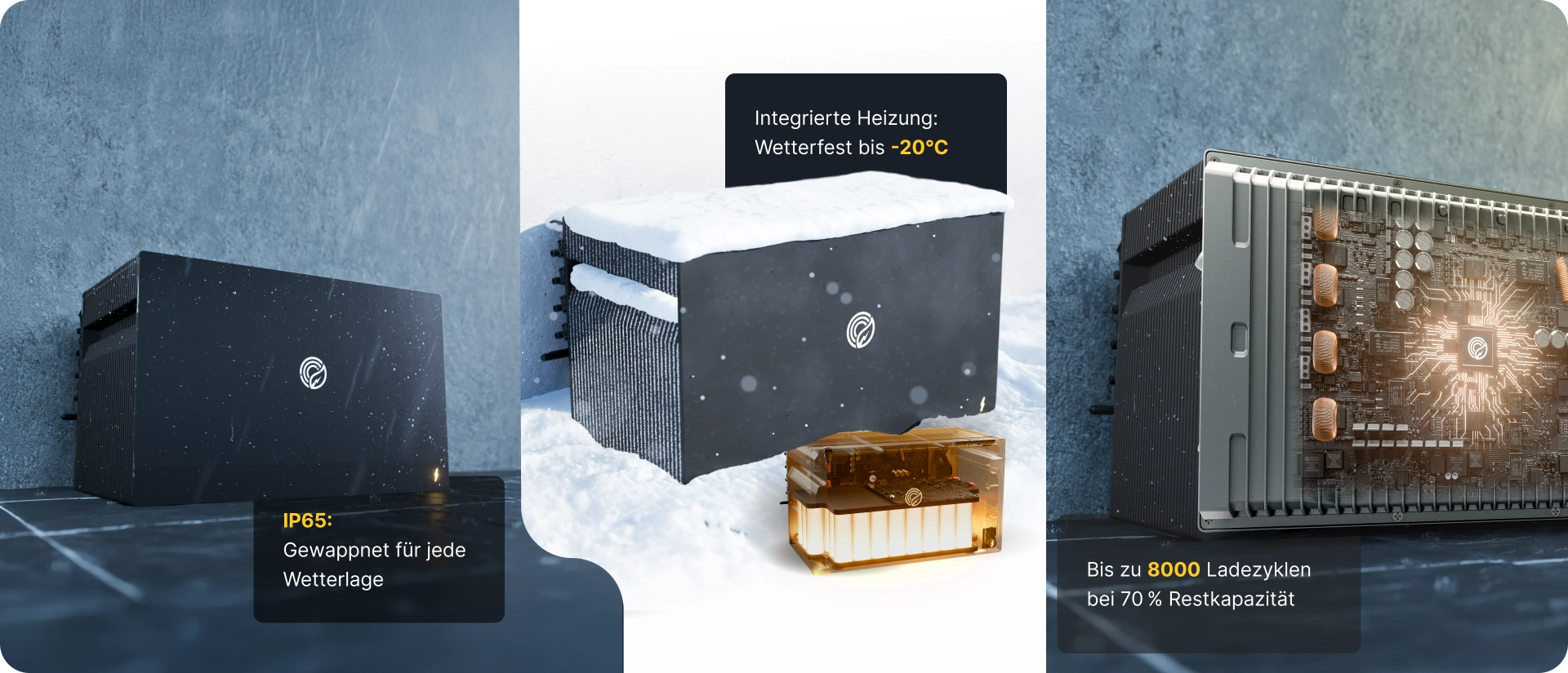 - Drei Batteriespeicher: 6,33 kWh
