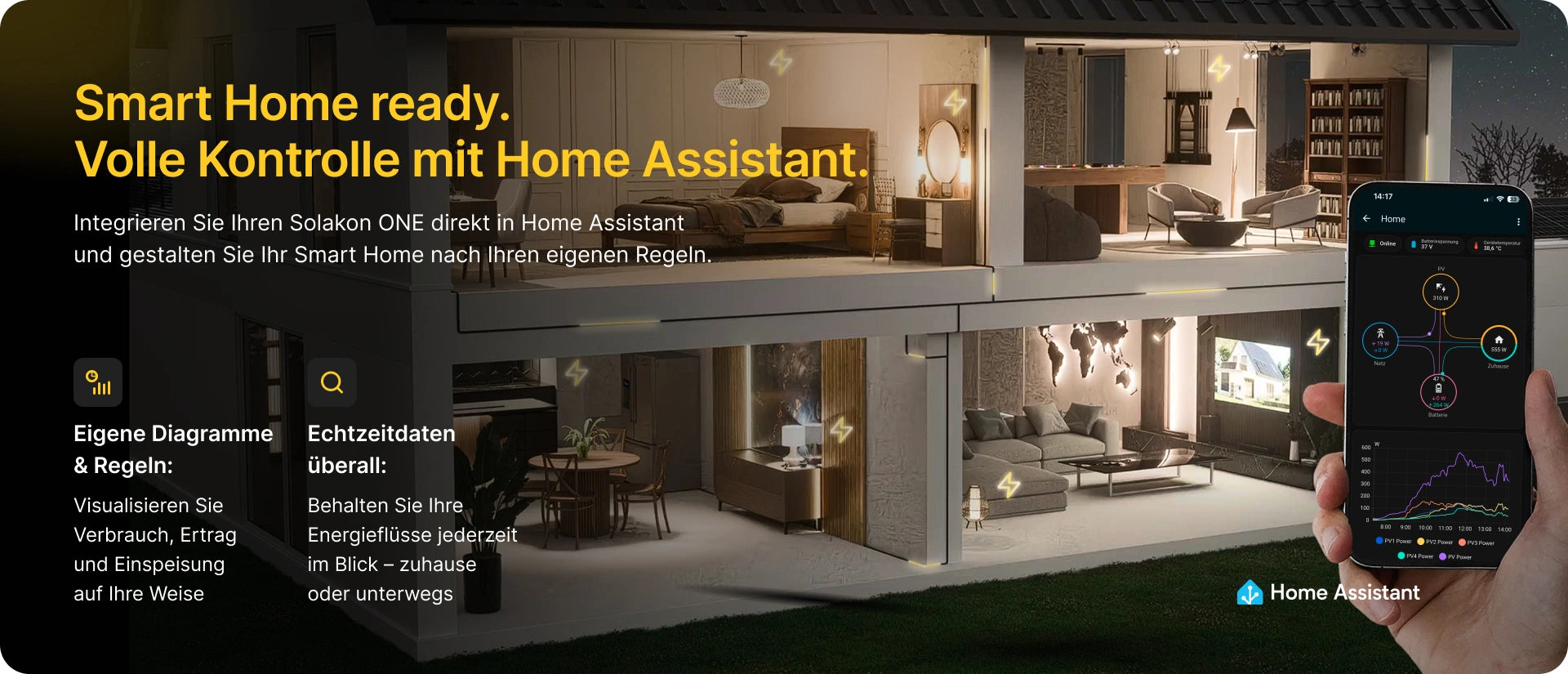Doch die App ist nicht nur ein Monitoring-Tool, sondern auch Ihr intelligenter Energiemanager, der Ihnen hilft, aktiv Stromkosten zu sparen. Indem Sie den Ladezustand des Speichers und die aktuelle Produktion im Blick haben, können Sie bewusste Entscheidungen treffen, um Ihren Eigenverbrauch zu maximieren. Sehen Sie, dass der Speicher voll ist und die Sonne weiterhin scheint? Das ist der perfekte Moment, um energieintensive Geräte wie die Waschmaschine zu starten. Zudem bietet Ihnen die App detaillierte Analysen und historische Daten. Werten Sie Ihre Erträge und Ihren Verbrauch auf Tages-, Wochen- oder Monatsbasis aus, erkennen Sie Muster und optimieren Sie Ihre Gewohnheiten, um das volle Potenzial Ihrer PV-Anlage auszuschöpfen und Ihre Energiekosten auf ein absolutes Minimum zu senken.