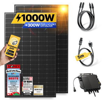 Mit diesem Komplettset erhalten Sie alles, was Sie für einen schnellen, sicheren und ertragreichen Start in Ihre persönliche Energiewende benötigen. Es ist die einfachste Möglichkeit, von der beeindruckenden Leistung eines 1000-Watt-Balkonkraftwerks zu profitieren.