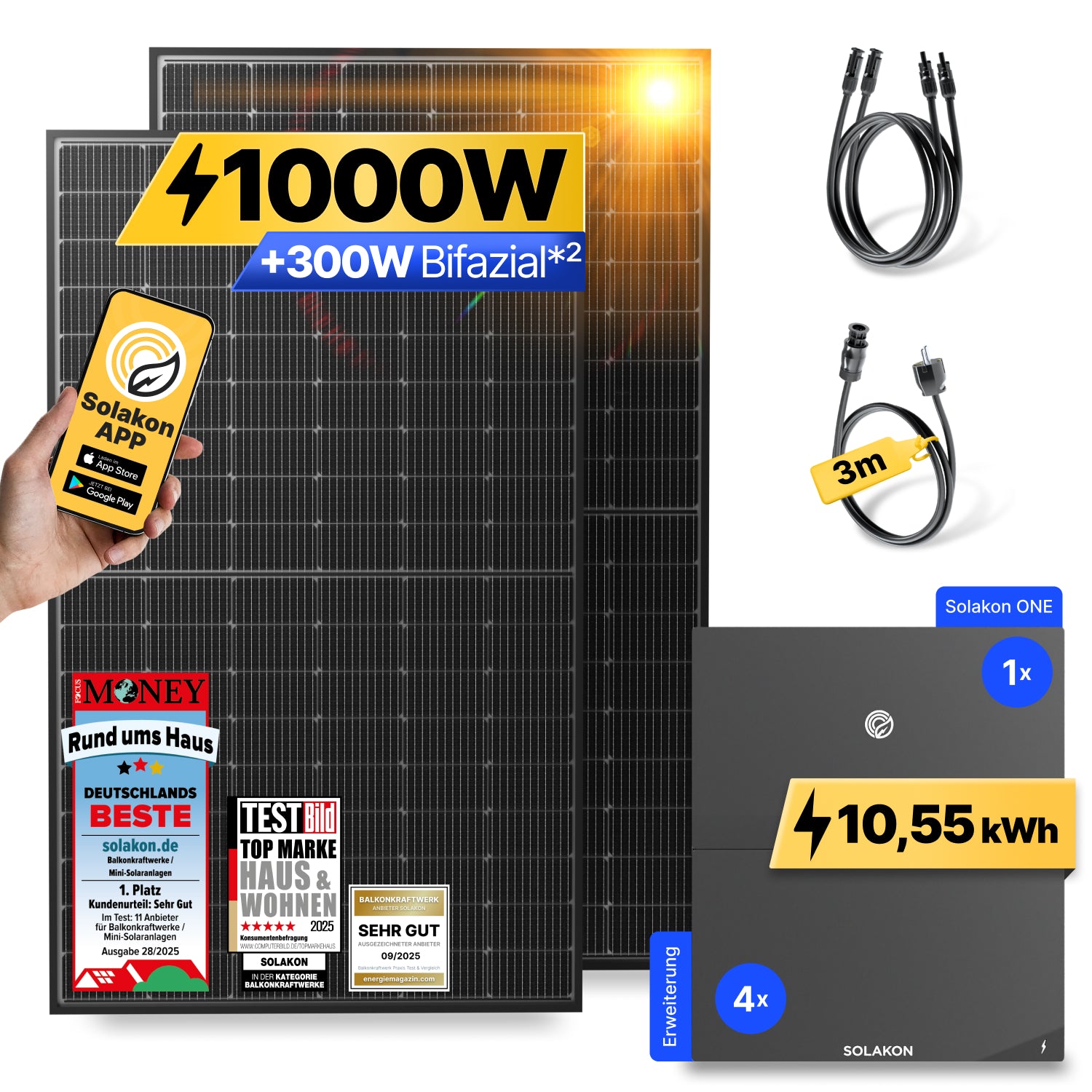 Mit diesem Komplettset erhalten Sie alles, was Sie für einen schnellen, sicheren und ertragreichen Start in Ihre persönliche Energiewende benötigen. Es ist die einfachste Möglichkeit, von der beeindruckenden Leistung eines 1000-Watt-Balkonkraftwerks zu profitieren.