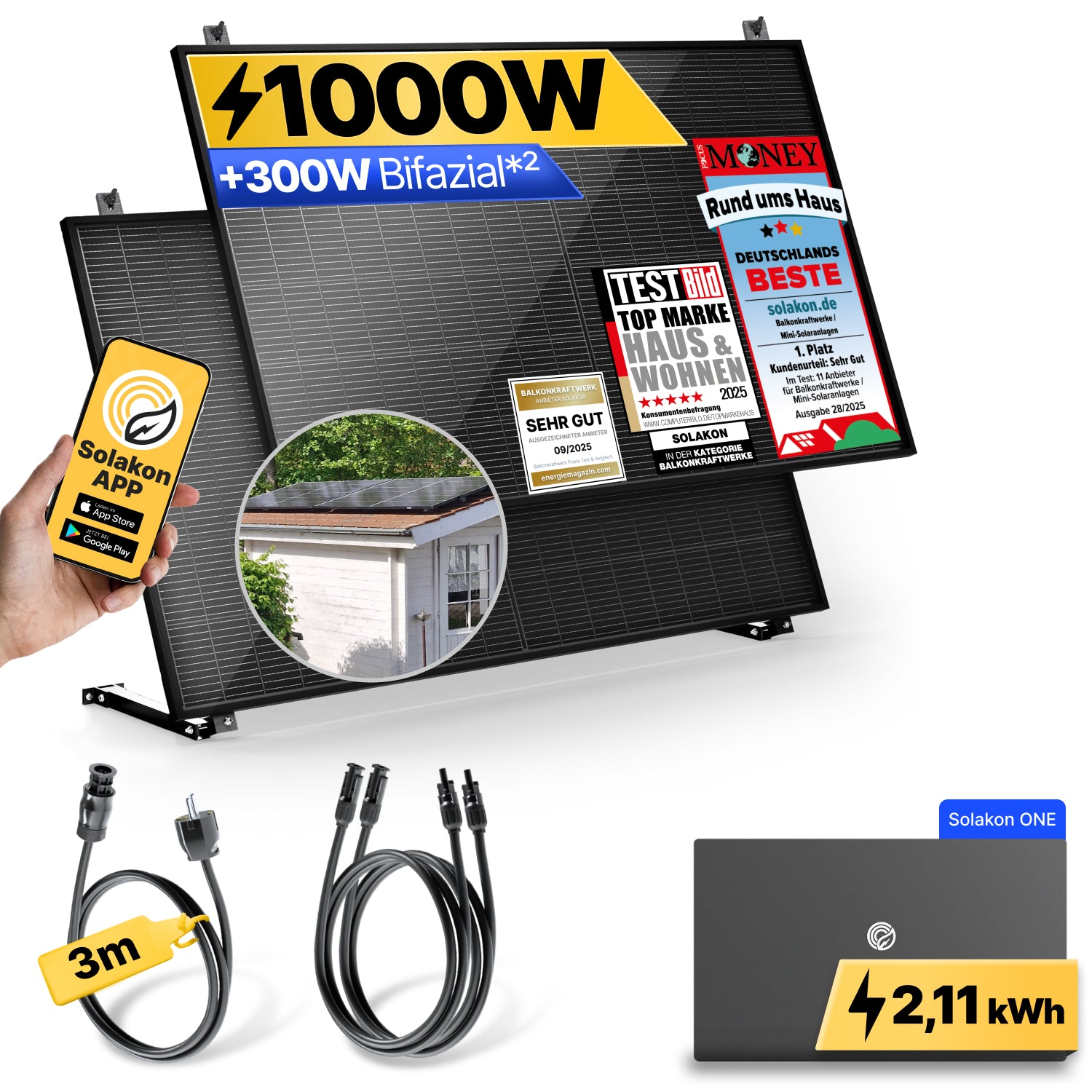onBasic: 1000 Watt Balkonkraftwerk Gartenhaus, 2.11 kWh, 3m