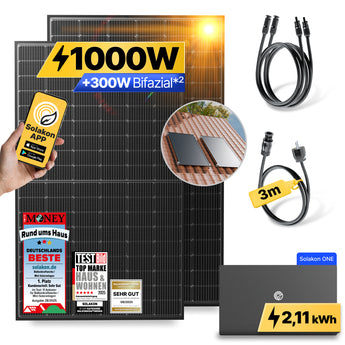 Wir bei Solakon möchten, dass Ihr Einstieg in die aktive Energieerzeugung so einfach und sicher wie möglich ist. Deshalb erhalten Sie bei uns Ihr Balkonkraftwerk mit 1000 Watt als perfekt vorkonfiguriertes Komplettset. Jedes Solakon Balkonkraftwerk Komplettset ist so zusammengestellt, dass alle Komponenten optimal aufeinander abgestimmt sind und sofort einsatzbereit geliefert werden.Sie müssen sich keine Gedanken über die Kompatibilität der einzelnen Komponenten machen – das haben wir bei Solakon bereits für Sie erledigt. Ein typisches 1000-Watt-Komplettset von uns, wie unser beliebtes Modell onBasic, besteht aus folgenden handverlesenen Qualitätskomponenten, die ein perfektes Zusammenspiel garantieren: