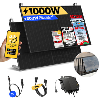 Mit diesem Komplettset erhalten Sie alles, was Sie für einen schnellen, sicheren und ertragreichen Start in Ihre persönliche Energiewende benötigen. Es ist die einfachste Möglichkeit, von der beeindruckenden Leistung eines 1000-Watt-Balkonkraftwerks zu profitieren.