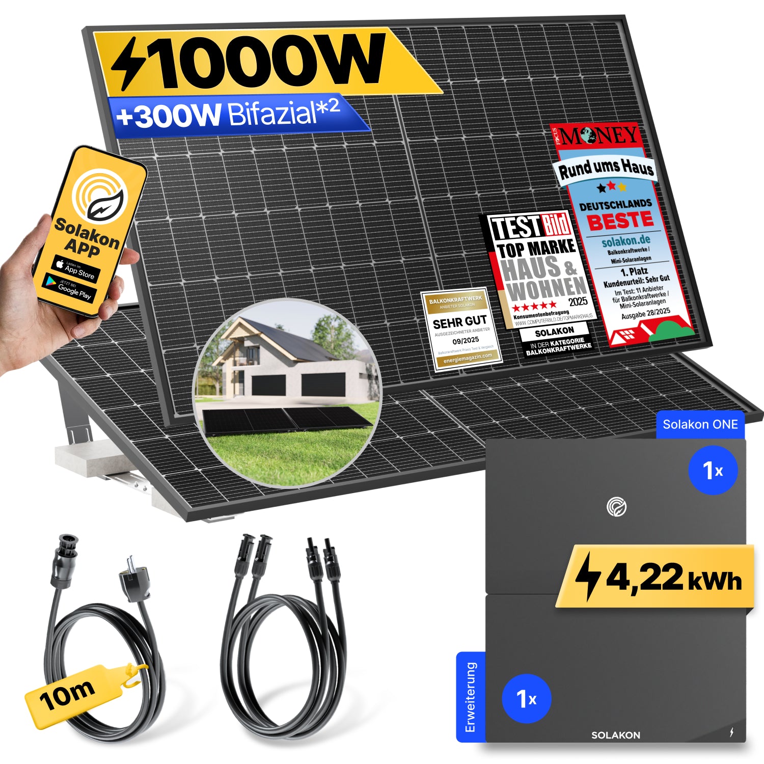 onBasic: 1000 Watt Balkonkraftwerk Garten & Flachdach, 4.22 kWh, 10m