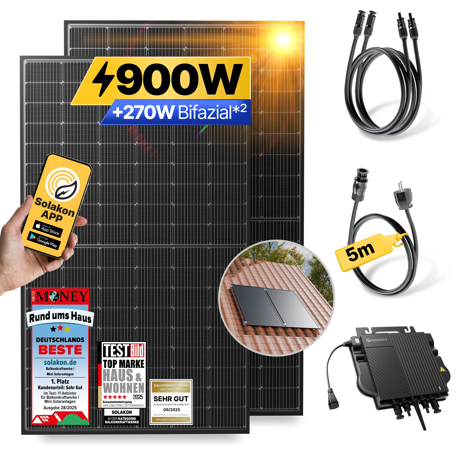 Ein Balkonkraftwerk mit 900 Watt von SOLAKON ist ein sorgfältig zusammengestelltes System aus hochwertigen und perfekt aufeinander abgestimmten Komponenten.