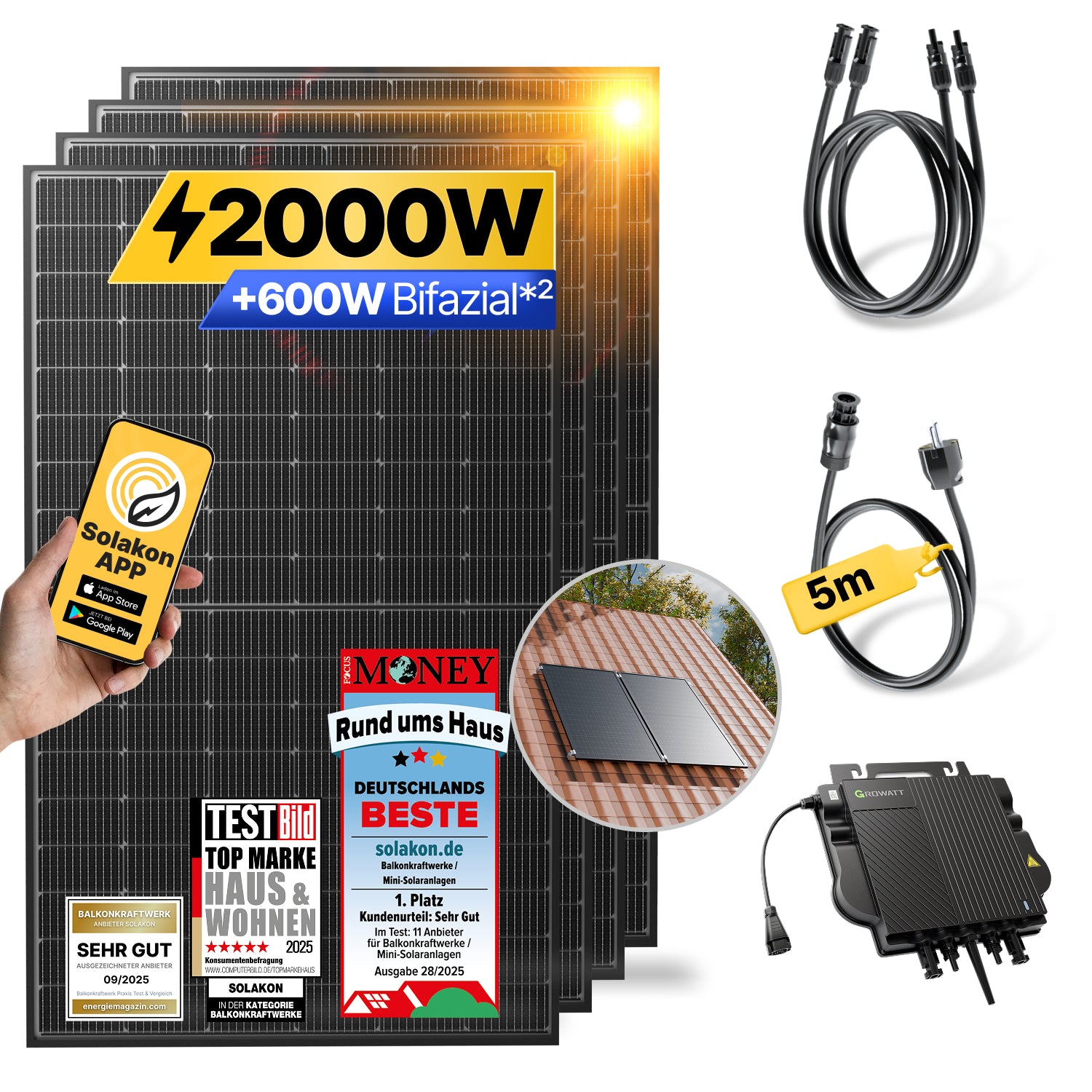 Steigen Sie jetzt in die Oberklasse der Solarenergie für zu Hause ein und wählen Sie ein Balkonkraftwerk mit 2000 Watt von Solakon.