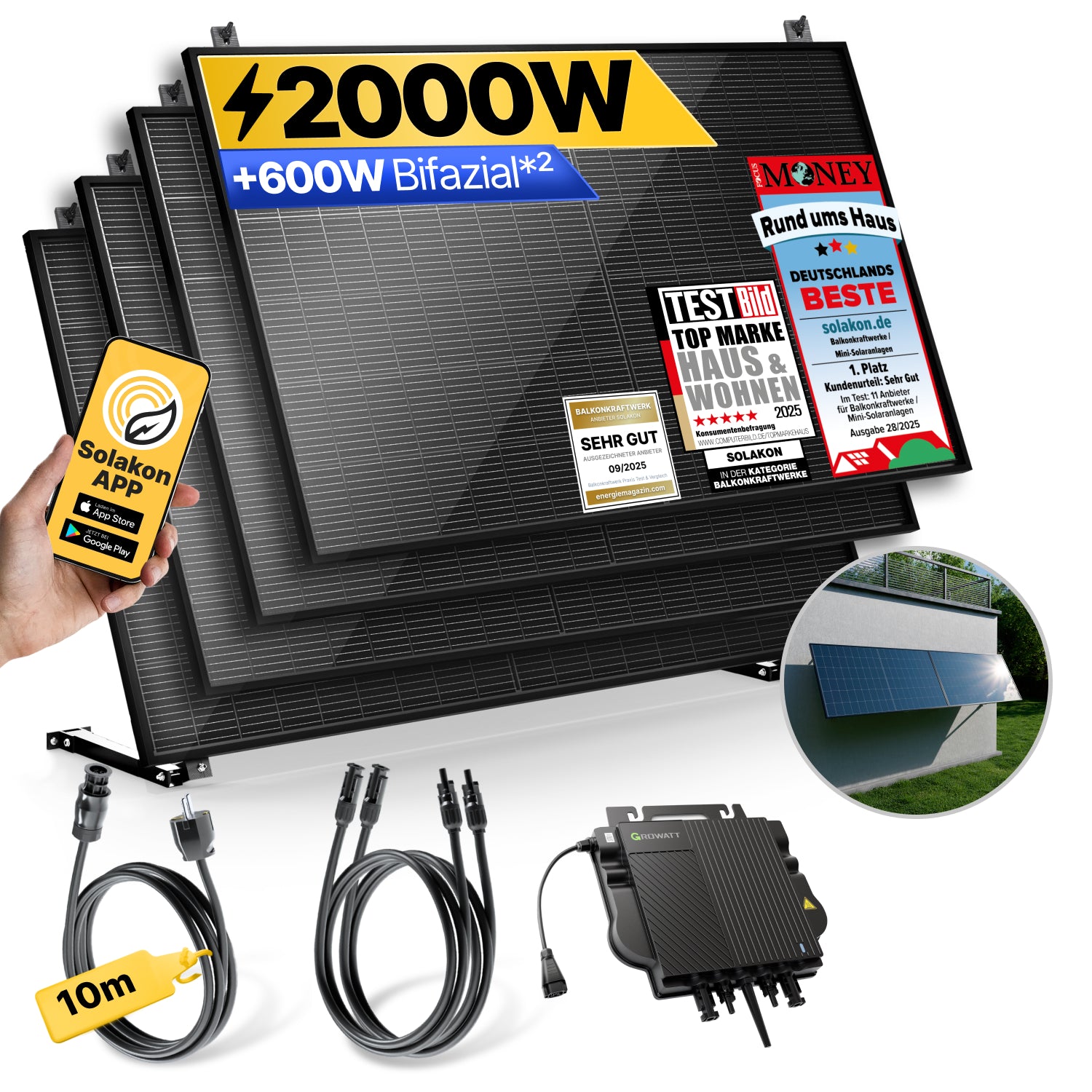 Steigen Sie jetzt in die Oberklasse der Solarenergie für zu Hause ein und wählen Sie ein Balkonkraftwerk mit 2000 Watt von Solakon.