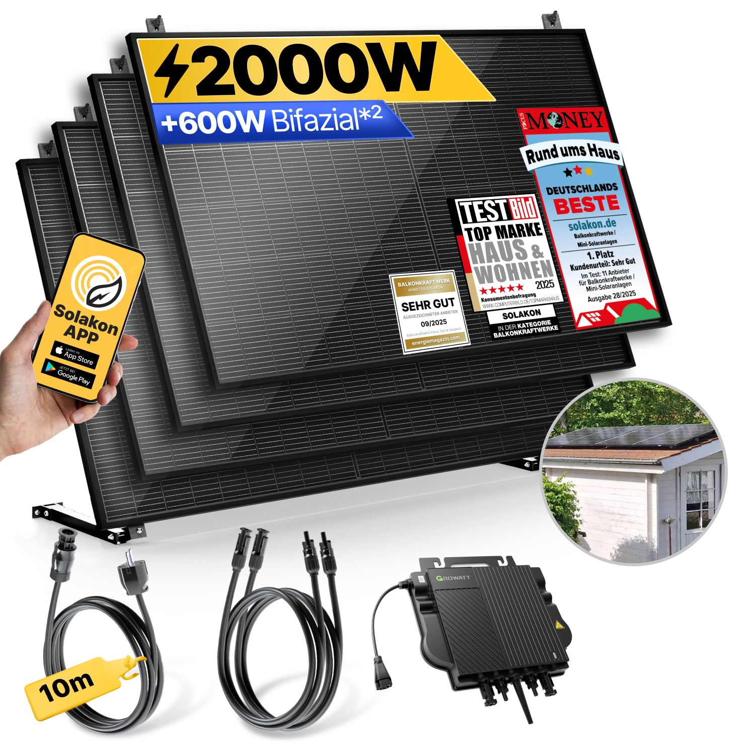 Steigen Sie jetzt in die Oberklasse der Solarenergie für zu Hause ein und wählen Sie ein Balkonkraftwerk mit 2000 Watt von Solakon.